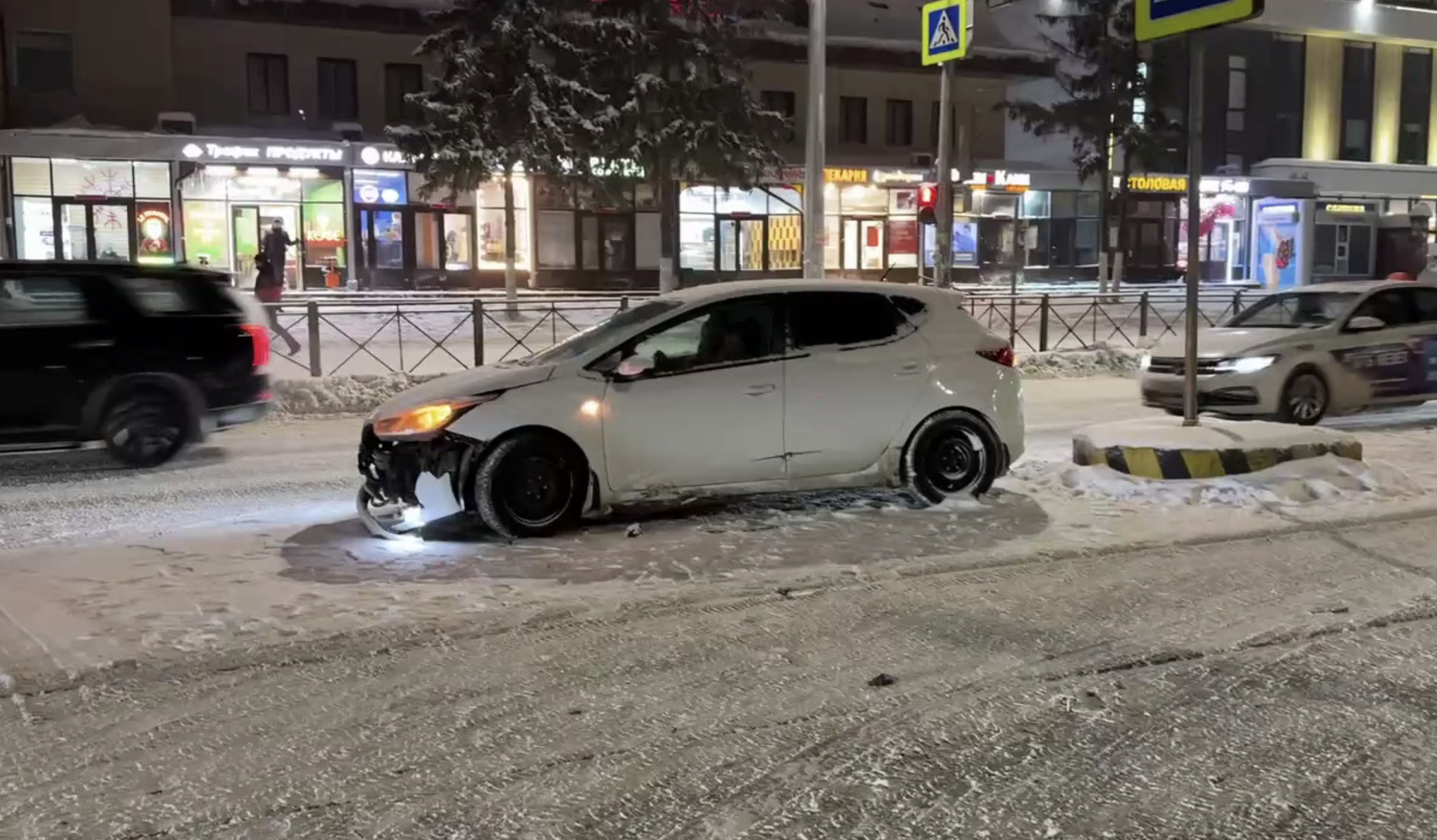В Казани каршеринговый автомобиль врезался в столб на перекрестке