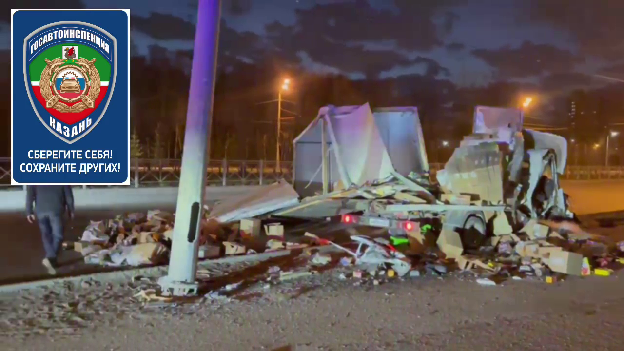 В Казани фургон с продуктами врезался в опору и перекрыл две полосы