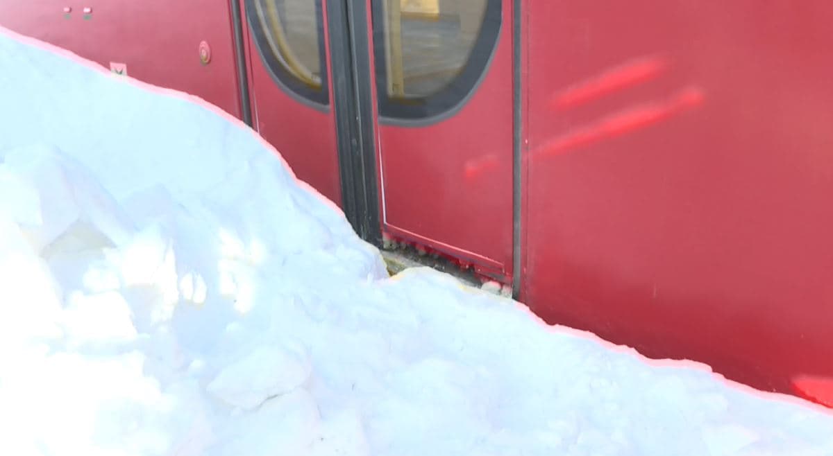 Сугробы на остановках Авиастроя перекрыли входы в трамваи