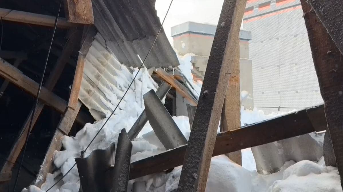 После сильного снегопада в городе сложилась крыша дома